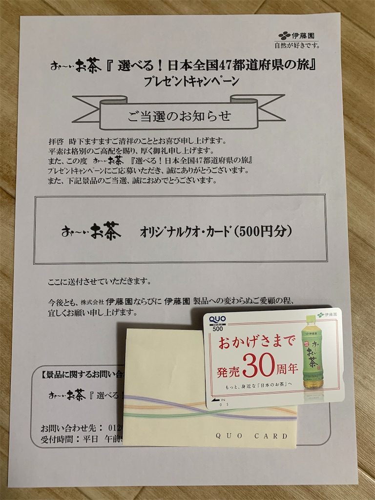 おーいお茶 さまよりクオカード