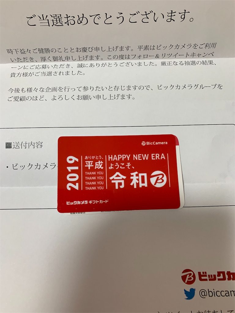 ビックカメラさまより 商品券