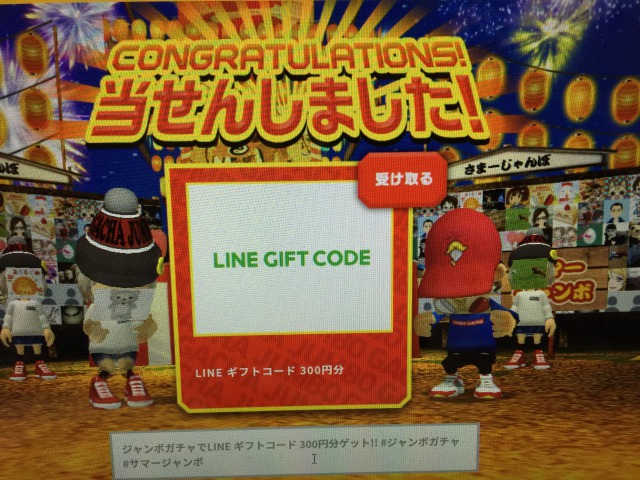 LINE GIFT CODEがやっと当たりました。